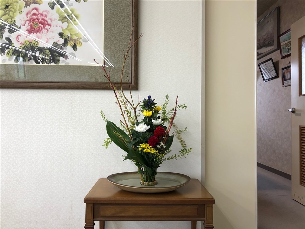 先日、岡垣中央霊園にて月に一度の華道高野山レッスンが行われました。
