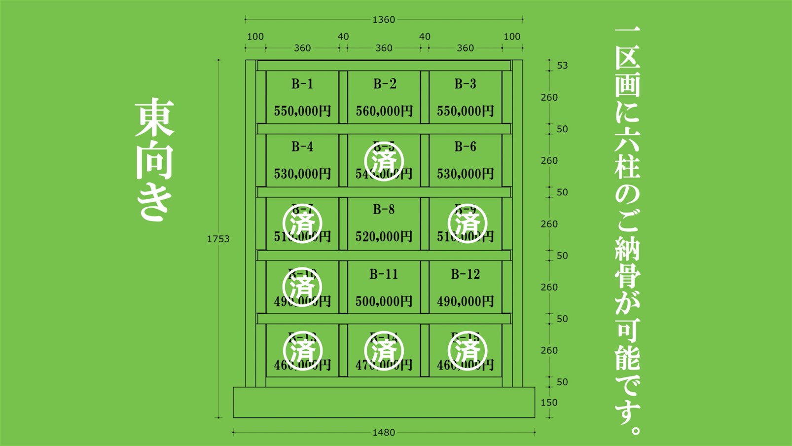 1区画 6柱納骨 : 460,000円~560,000円